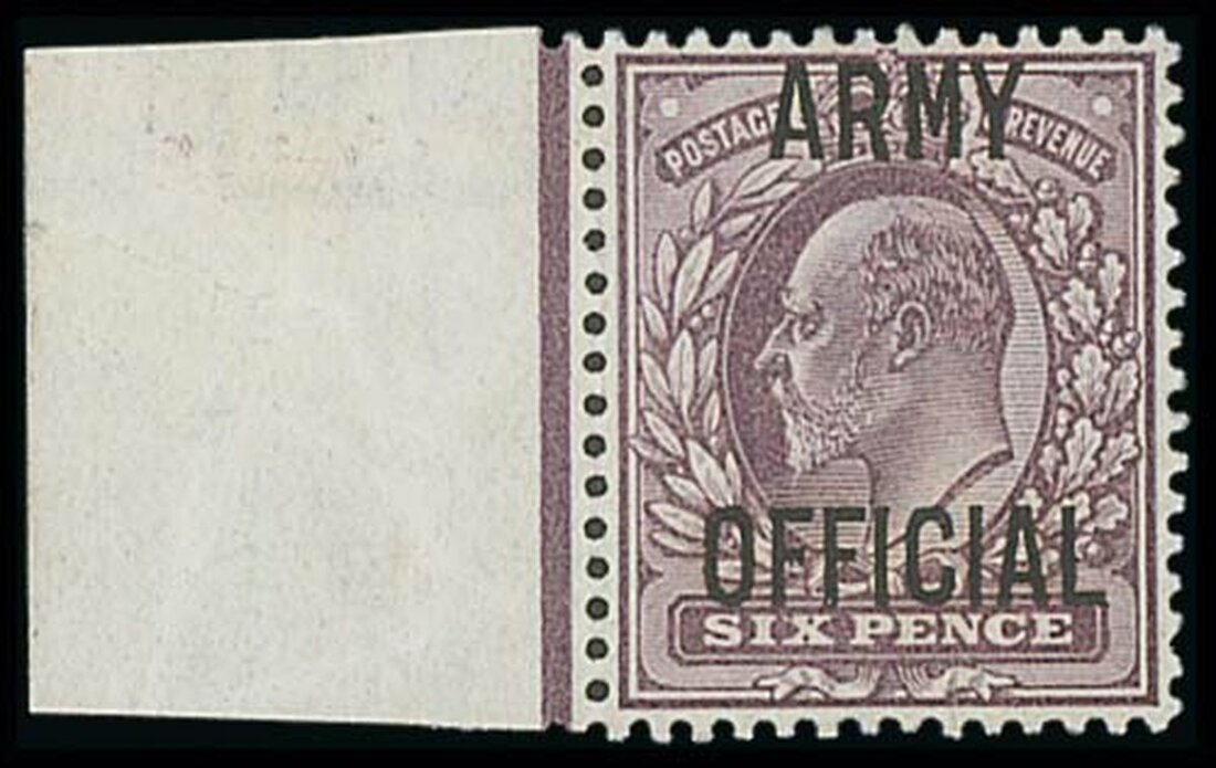 Second Type overprint: 6d. pale dull purple with sheet margin at left, small fault in the margin only, though very fine unmounted mint. Wenvoe Certificate (2024). S.G. O52, Spec. MO22, £1,800