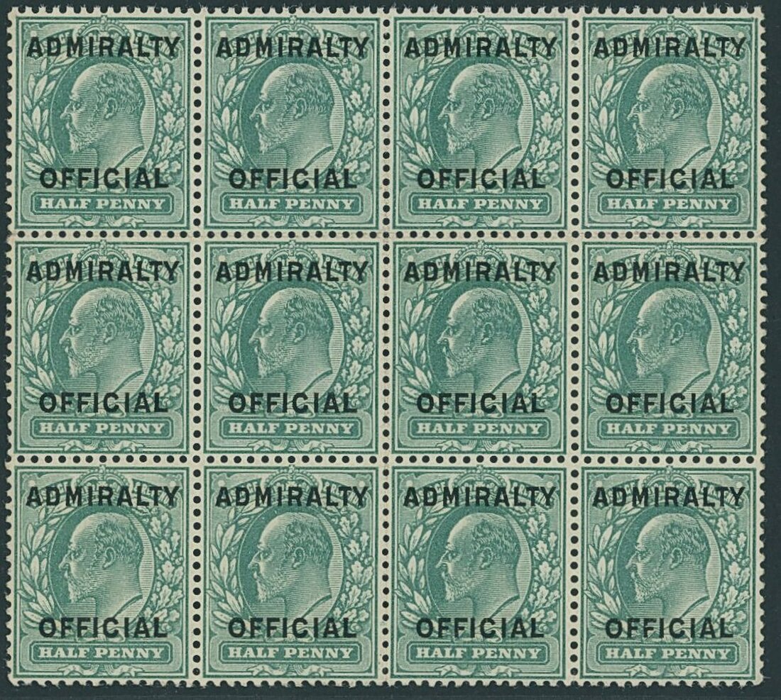 ½d. blue-green block of twelve (4x3), very fine unmounted mint, folded along one or two perfs as one might expect, very fine and an impressive multiple. R.P.S. Certificate (2013). S.G. O107, MO36, £800+