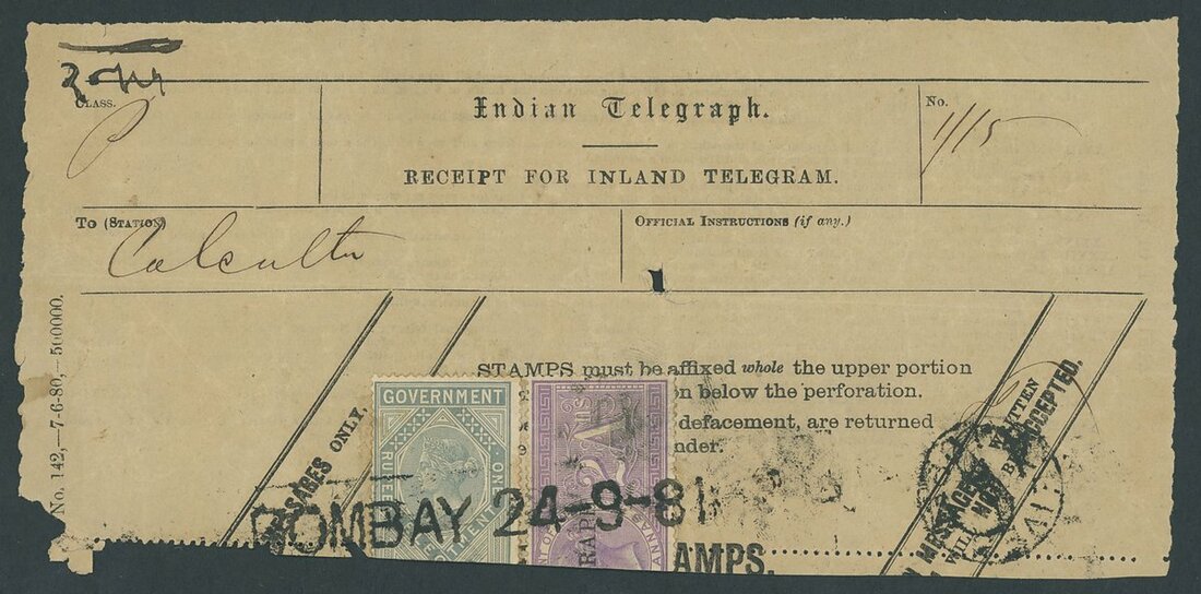 Auction: 25032 - Stamps and Covers of British Asia featuring the 'Imperial' Collection of Indian Telegraphs and Revenues