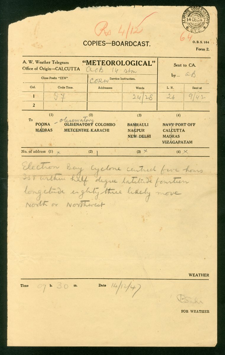 1870s-1950s telegrams group (16), early range comprising Mohableshwar, Rajkote and Surat, Jodhphur-Bikaner Railway telegrams (2), press telegrams (3) including 1901 Reuters private telegram, 1956 A.F.P. press telegram - "[...] govt india taken serious note kashmir premier bakshi ghulam mohammeds allegation about pakistani agents provocateurs operating kashmir disguised as businessmen", Calcutta meteorological telegram - the form with mispelling