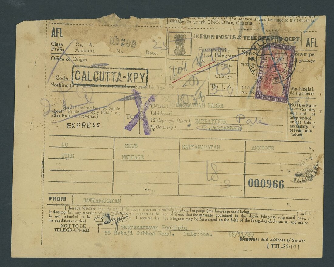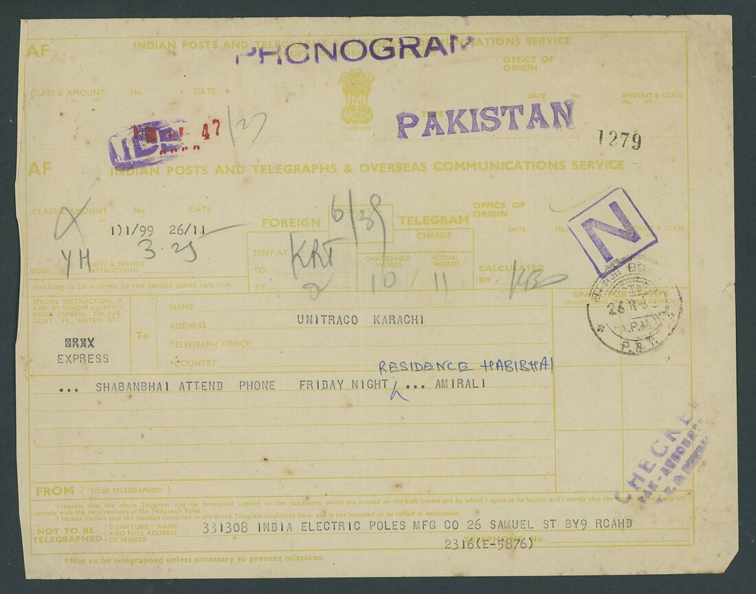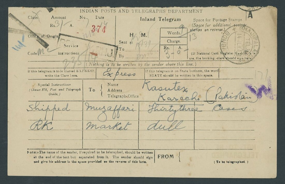 Telegrams to Pakistan group (14), from Bombay and Calcutta, various types, with a range of cachets, including
