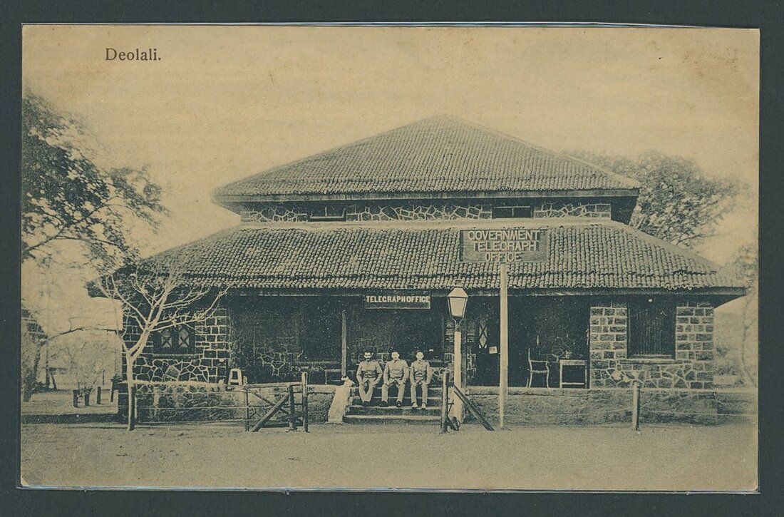 Small group comprising unused picture postcard depicting the Telegraphic Office at Deolali (Army Camp near Nasik), plus two telegraph forms, used at Parbhani and Ratangarh