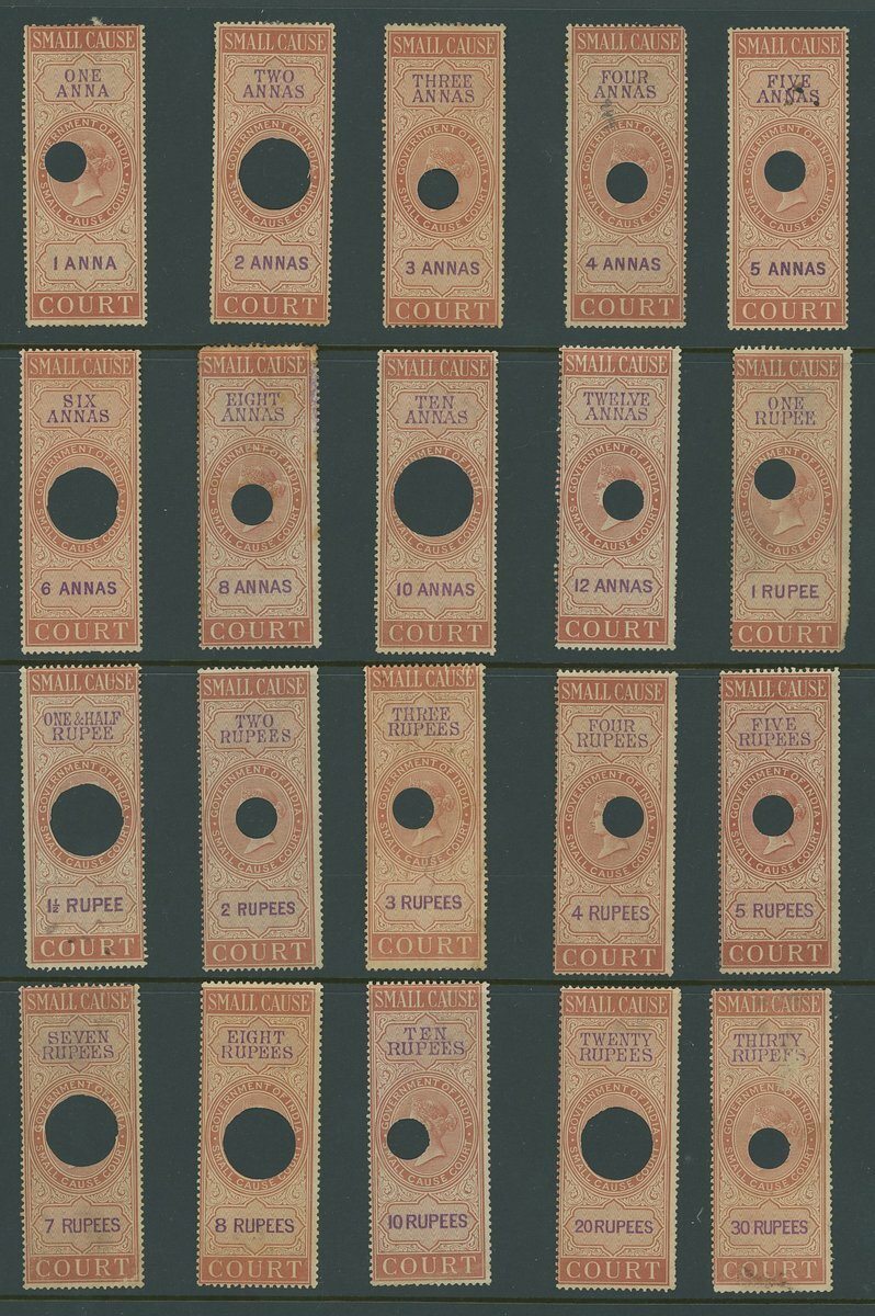 1868 1a. to 30r., twenty-nine values, used, with 7mm or 14mm punched holes through the Queen's profile; some faults. Barefoot 1-24.