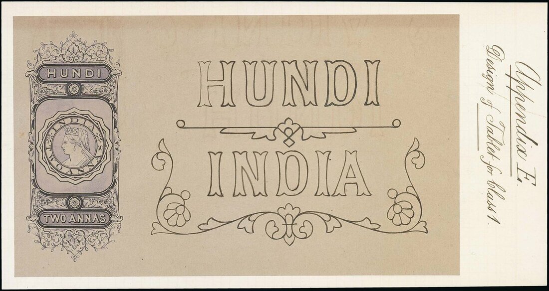 Artist's sketch for QV 2a. value, both the denomination panel and watermark, mounted to Appendix sheet "E" from the De La Rue record book headed "Design of Tablet for Class 1"; fine. Photo.