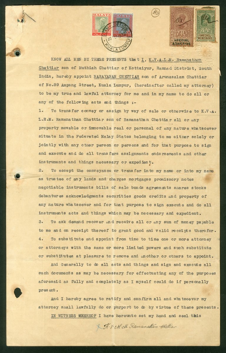India revenues and stamped paper used with Malaya adhesives, documents group (7), including Selangor, Johor, Malacca, etc.