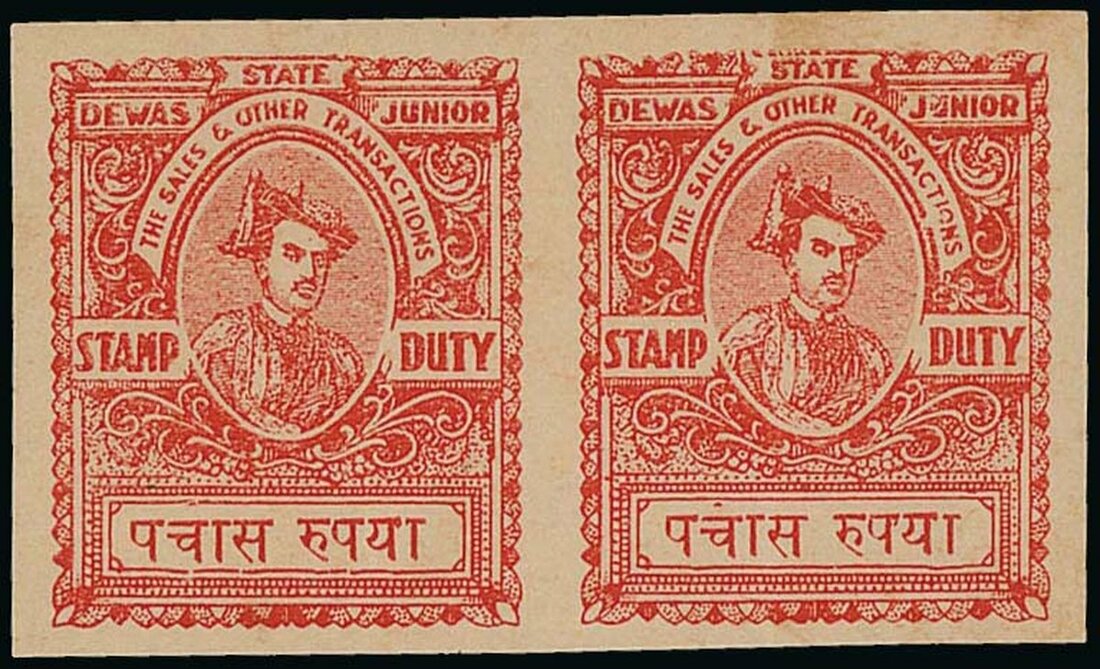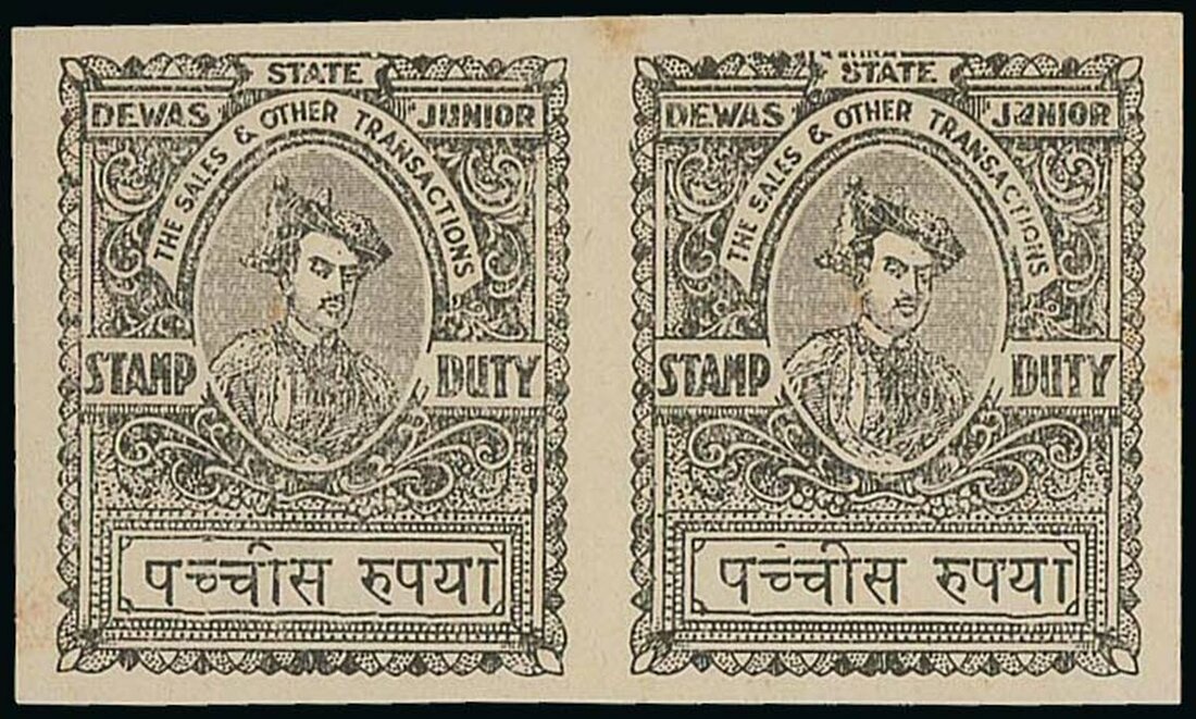 Dewas Junior. 1p. to 50r., twenty values, die proofs in horizontal pairs; fine. Photo.