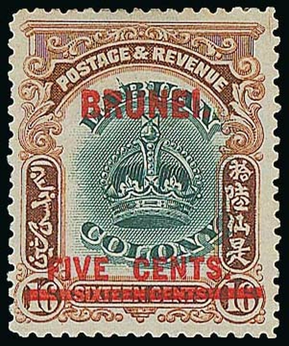 1906 5c. on 16c. green and brown, variety line through