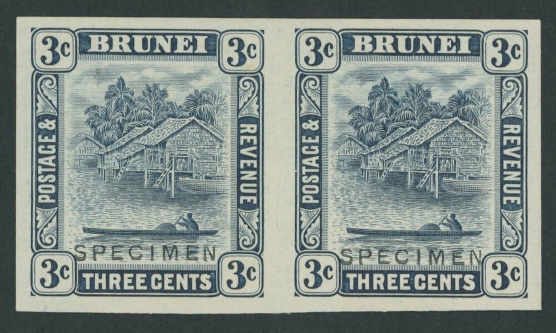 c.1921 3c. indigo imperforate printer's sample, a horizontal pair both overprinted