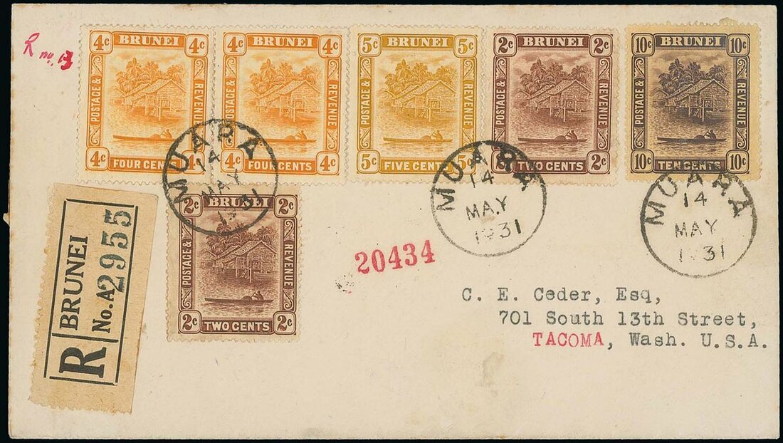 1931 (14 May) envelope registered to USA, bearing 1912 10c., 1924 2c. and 5c. and 1929 4c. (2), all clearly tied by