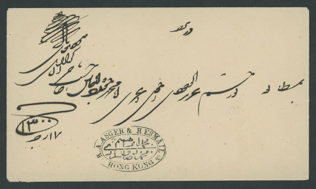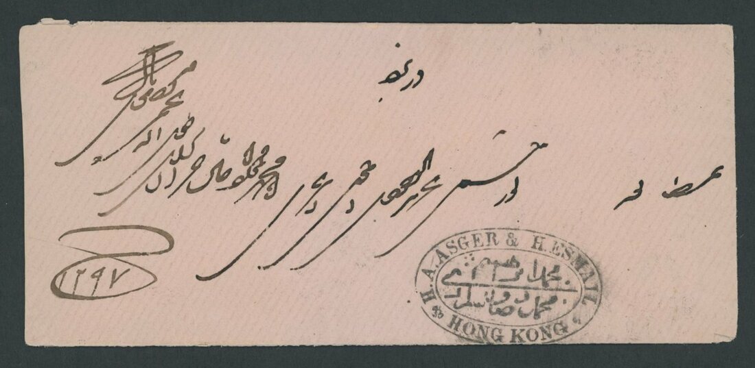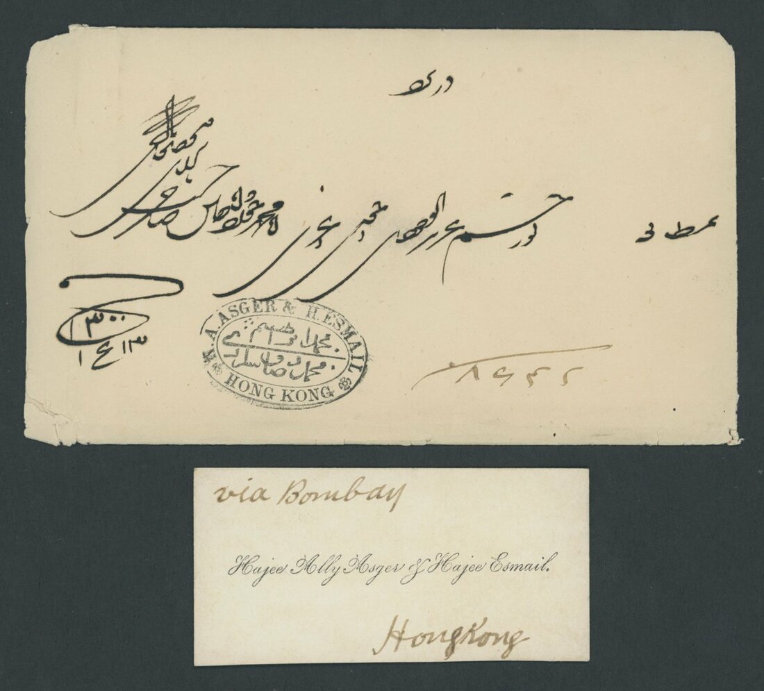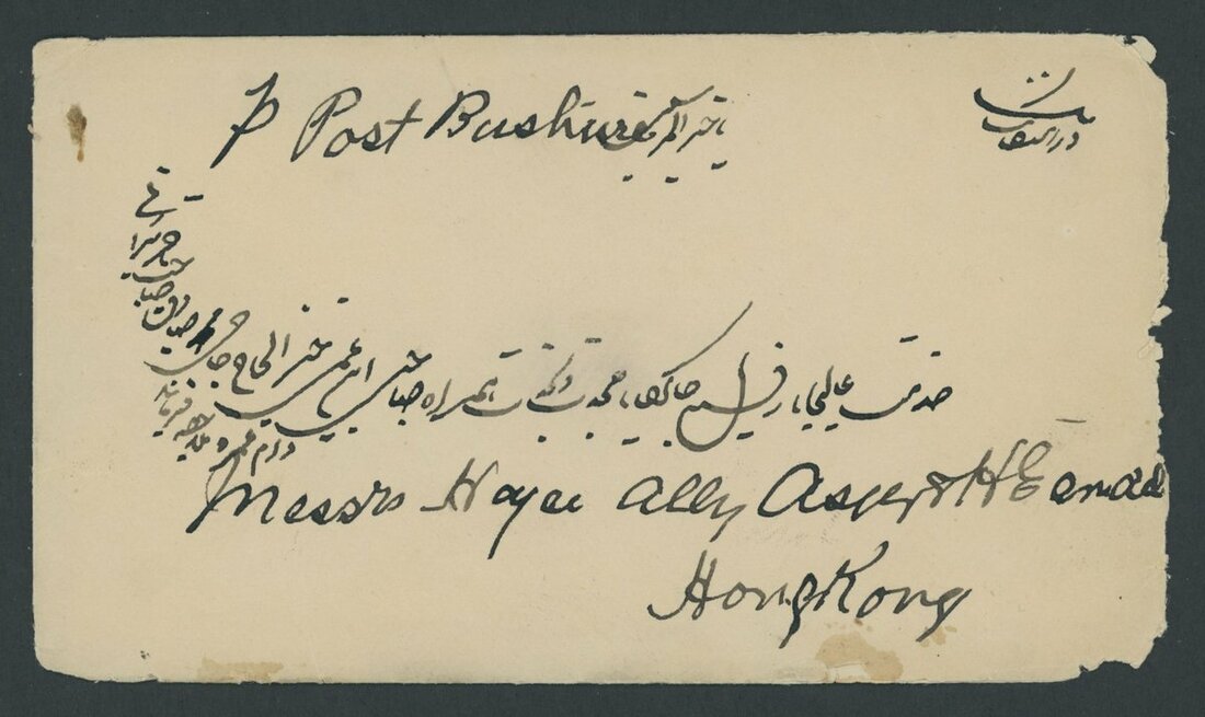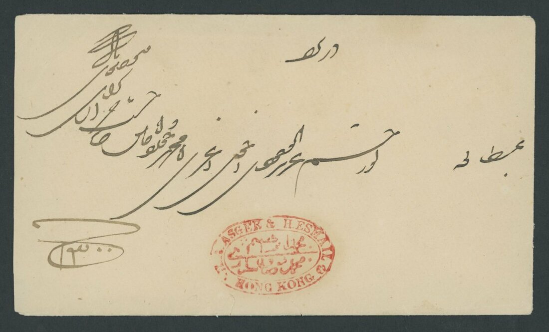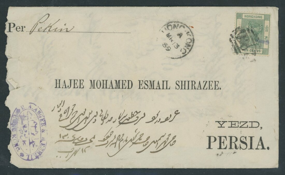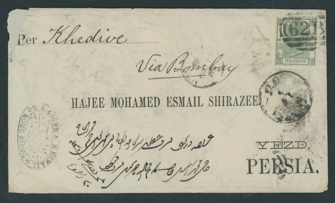 A Hong Kong to Yezd (Persia) postal history collection (8) from the same correspondence, each showing company handstamp of "