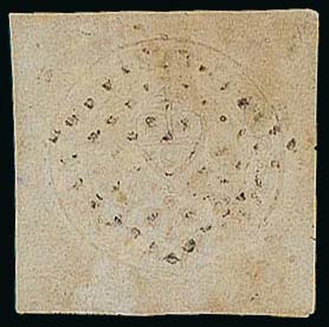 ½a. white, cut square, well clear of the impression, lightly cancelled by diamond of dots, some improved paper foxing, thinning at foot and small corner bend at upper right, otherwise rare. S.G. S1, £3,250. Photo