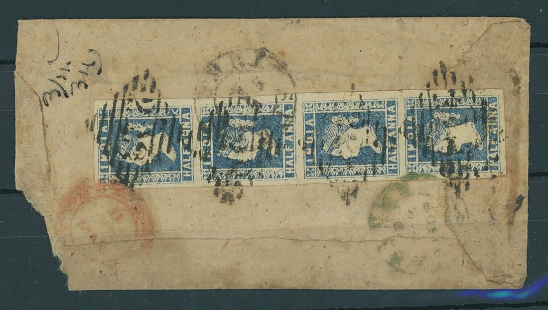 ½a. used selection (23), generally four margins, including five covers, one bearing vertical strip of four cancelled "228" in barred diamond (Peshawar). A useful selection.