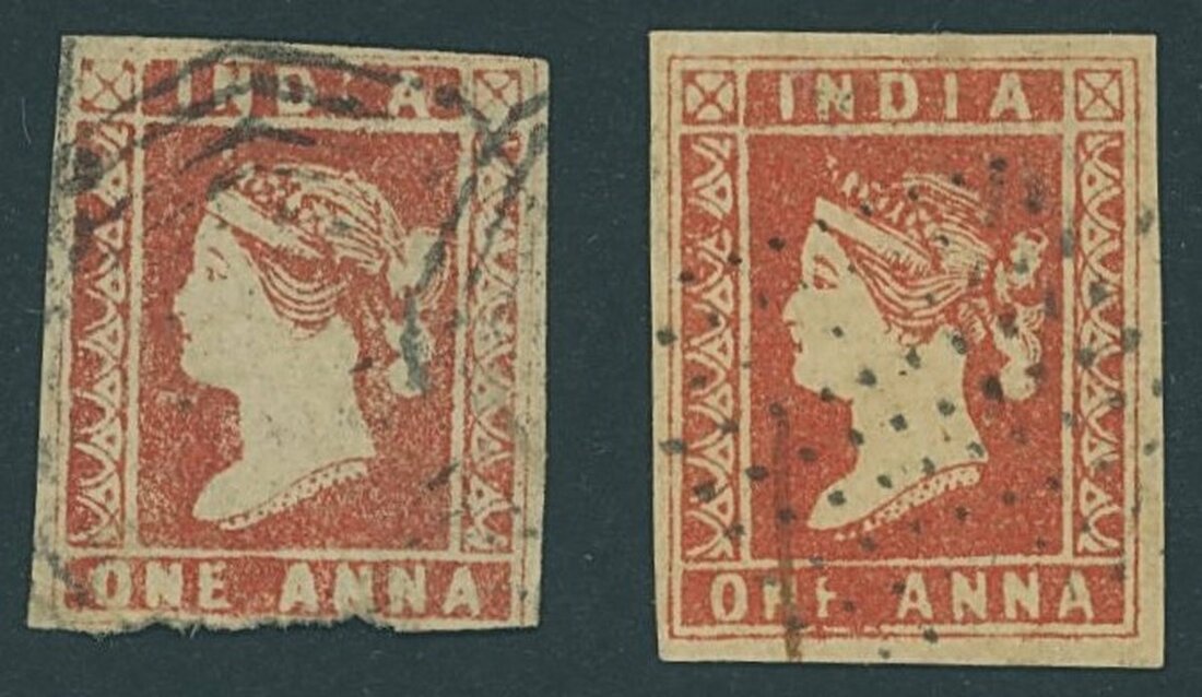 A mint and used collection including Die I used horizontal pair and singles (10), some with retouches ex Dawson, also example tied by diamond of dots to 1855 (24 Sept.) mourning envelope from Landour to Edinburgh; Die II Stone 'C' unused block of four with small tear in between impressions at foot and used singles (5). Mixed condition though an interesting group.