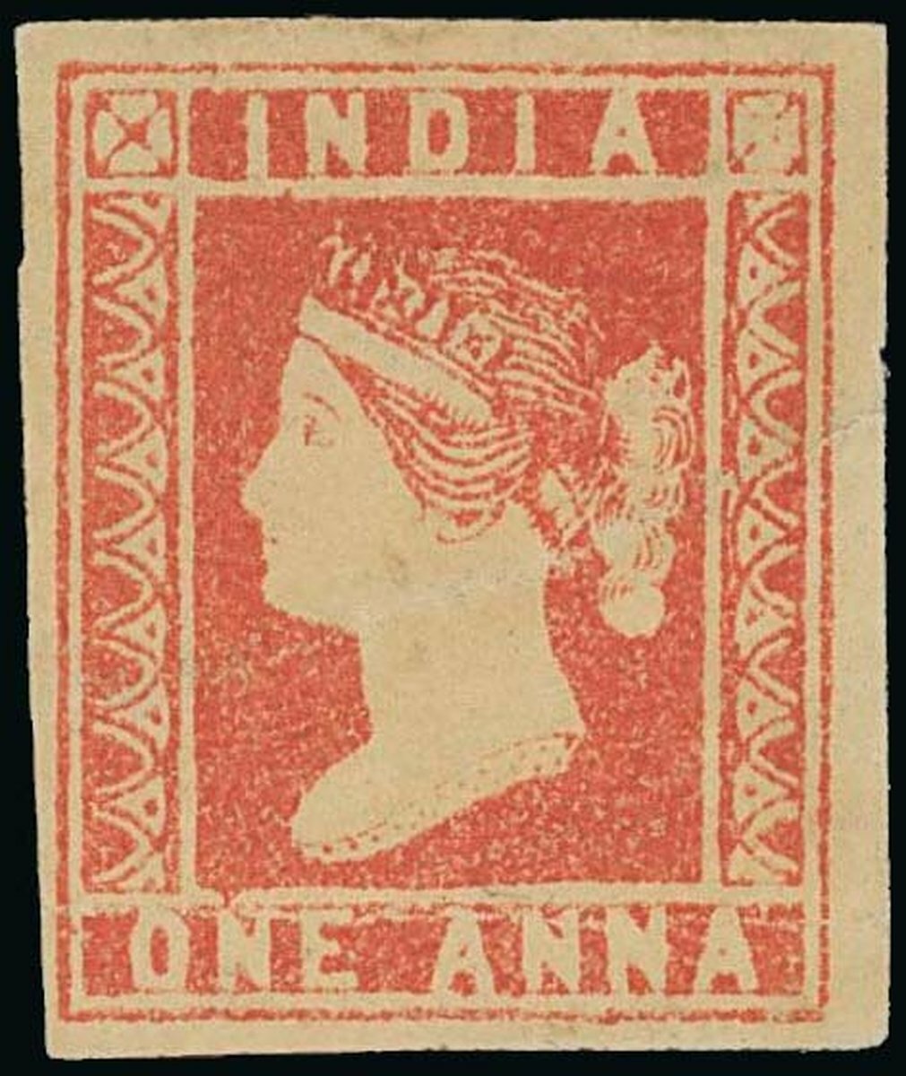 1a. red, clear to large margins, unused without gum; pressed diagonal crease, still an attractive example of this scarce stamp. S.G. 12, £1,600. Photo