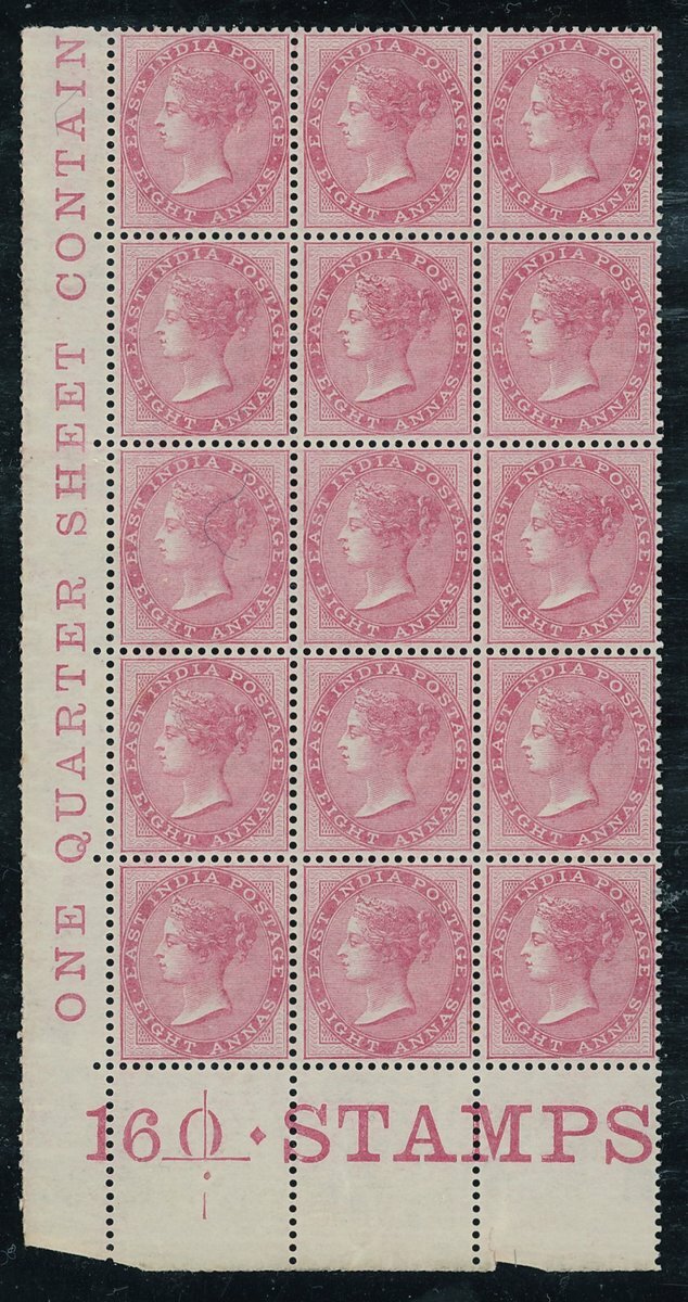 1868 (Jan.) 8a. rose lower left corner block of fifteen (3x5), unmounted mint with fresh original gum, a couple of minor toned spots and some usual gum wrinkling, otherwise very fine and attractive. S.G. 73, £1,125++