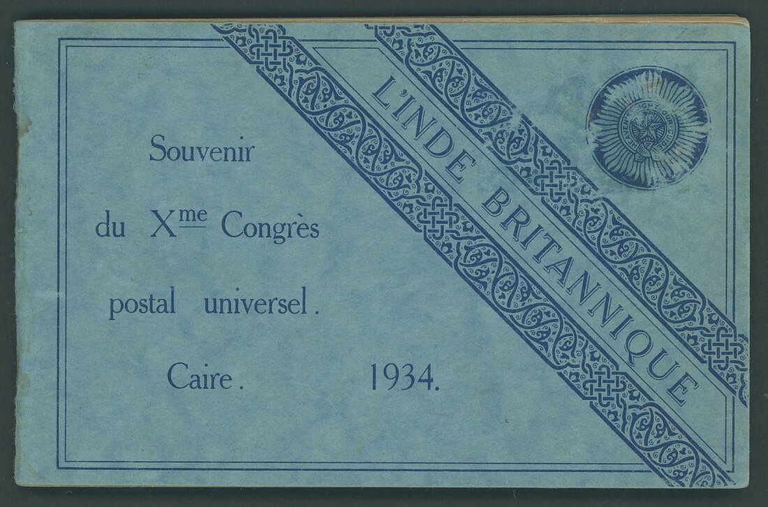 1934 presentation booklet titled "L'inde Britannique Souvenir du Xme Congres postal universel. Caire." comprising six pages to which are hinged 1926-33 part set to 25r., 1932-36 part set and 1929 Air set. Fine and scarce.