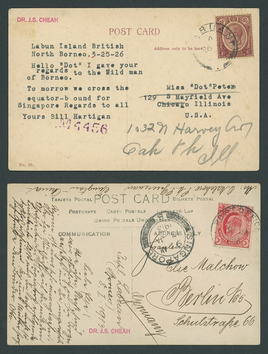 1913 (9 Jan.) real photographic postcard (village on riverbank) to Berlin, bearing Straits Settlements KE 3c. tied by