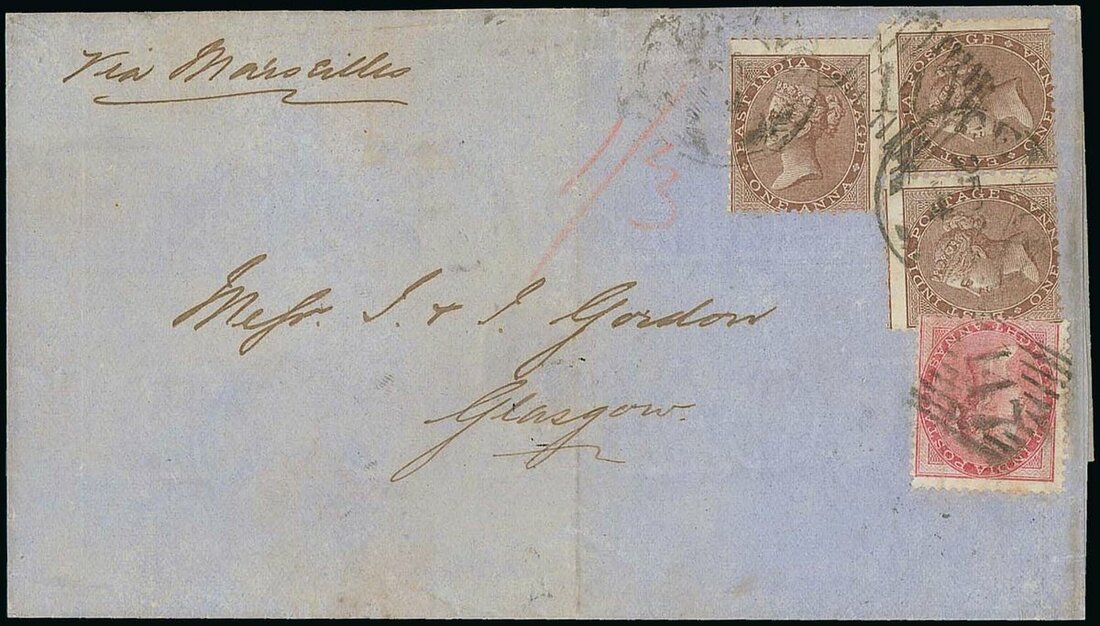 1864 (5 Oct.) entire from Penang to Glasgow, marked "Via Marseilles"