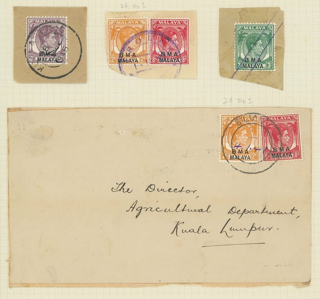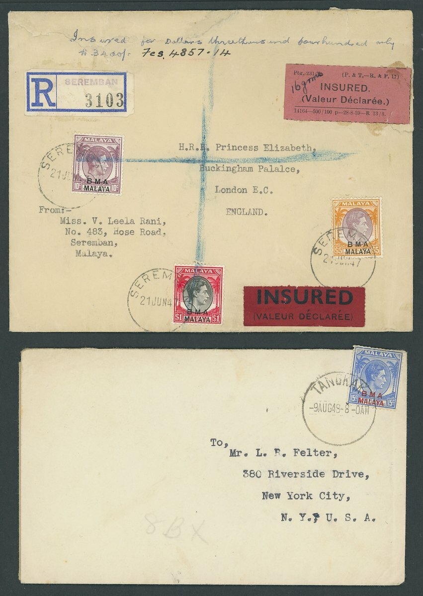 1946-48 group of covers (15) and pieces (8) including 1946 (28 May) envelope registered from Kota Bharu to Singapore, franked at 23c. and showing framed