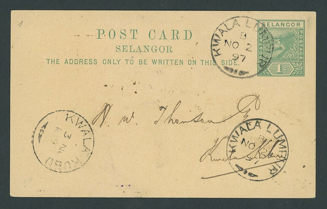 1897 (2 Nov.) 1c. stationery card to Kwala Kubu, cancelled by