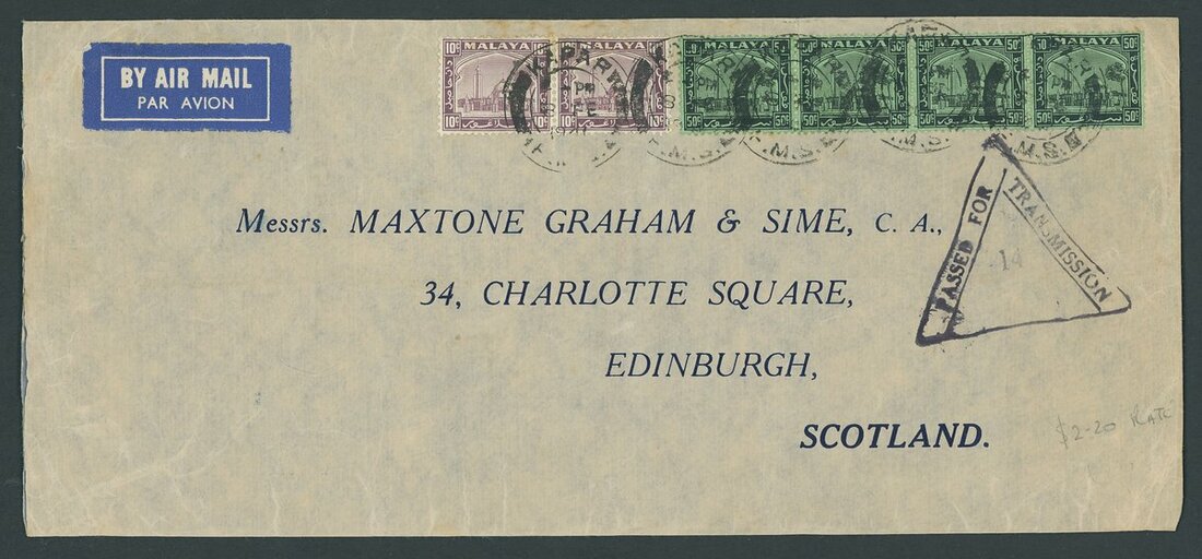 1941 (8 Feb.) envelope (240x106mm.) envelope flown to Scotland, bearing 1935-411 10c. (2) and 50c. (4) tied by