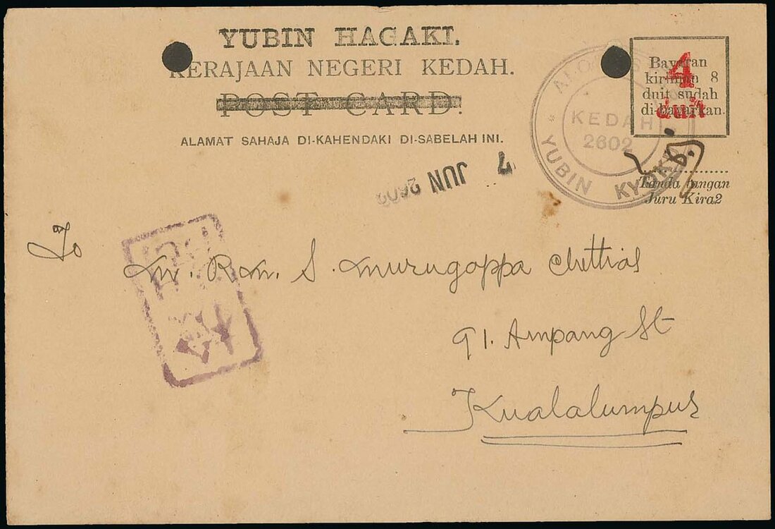 1942 (7 June) Official 4c. on 8c. stationery card to Kuala Lumpur, cancelled by