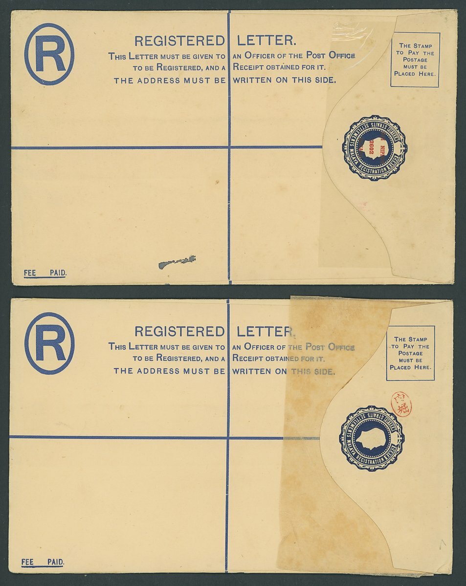 15c. unused registered envelopes comprising sizes H and H2 with red Uchibori seal, and size H2 with