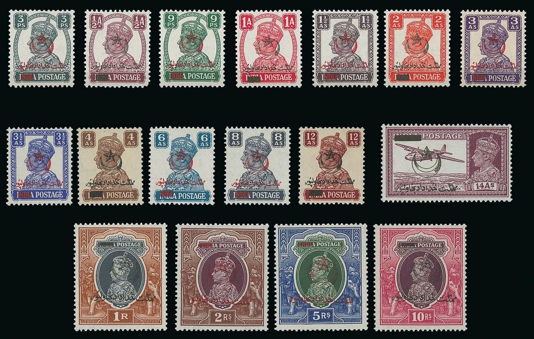 See note in S.G: This set was issued during the interim period following the implementation of the Indian Independence Act, during which time Bahawalpur was part of neither of the two Dominions created. The Amir acceded to the Dominion of Pakistan on 3 October 1947 and these overprinted stamps of India were then withdrawn.