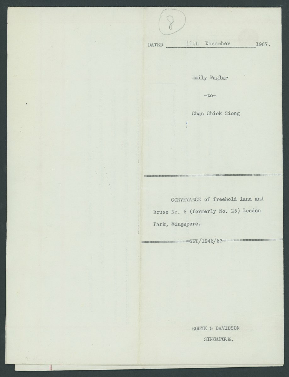 1967 (Dec.) Indenture bearing 1954 $100 pairs (2, one with small tear at foot) and $500 irregular block of six, all tied by Singapore red embossed datestamp. Scarce and most attractive