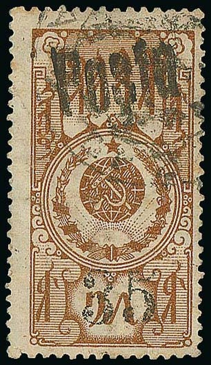 35k. on 15k. red brown large numerals, cancelled by light date stamp, lower left corner and upper right corner creased and minor peripheral toning, but much better than average for this very rare stamp, know just as used. Scott 42, $4,000. Photo