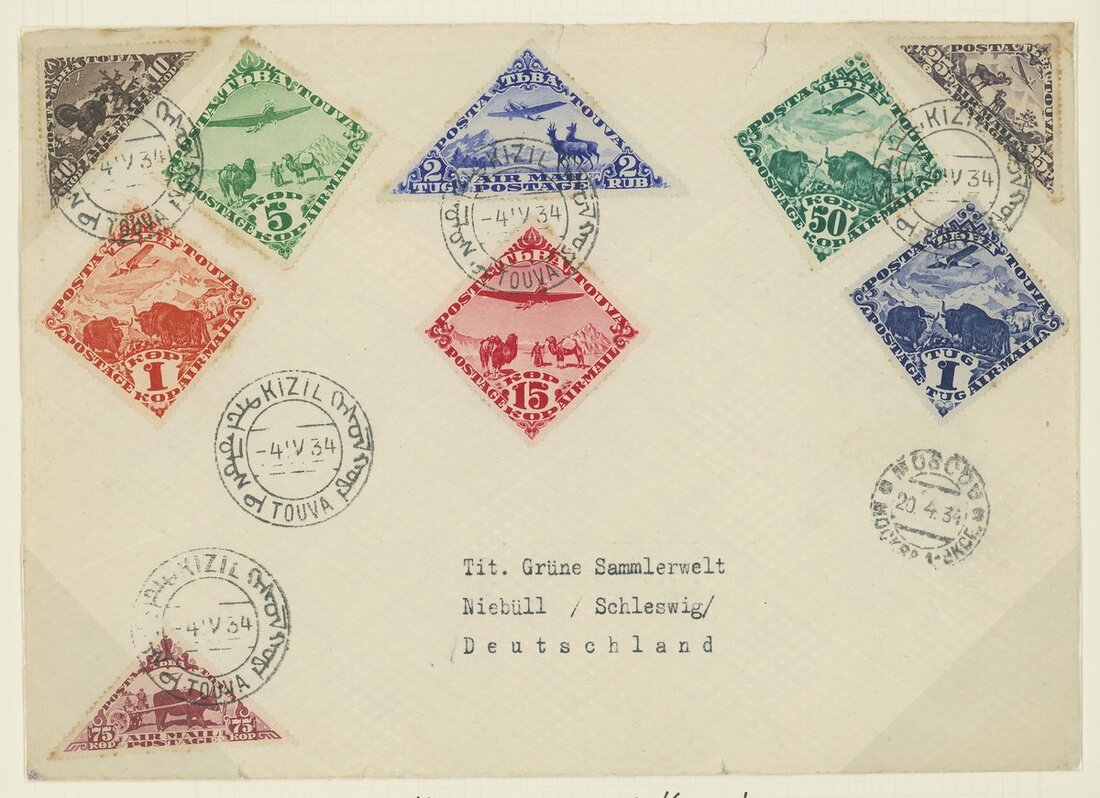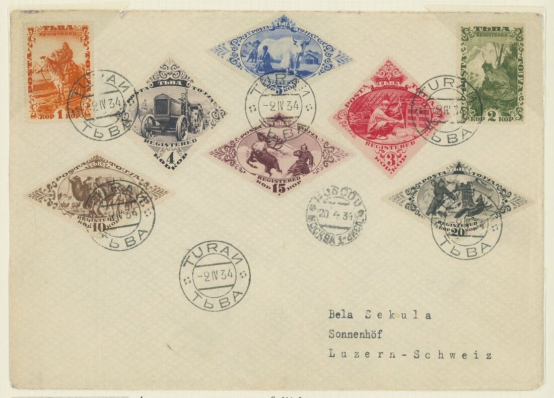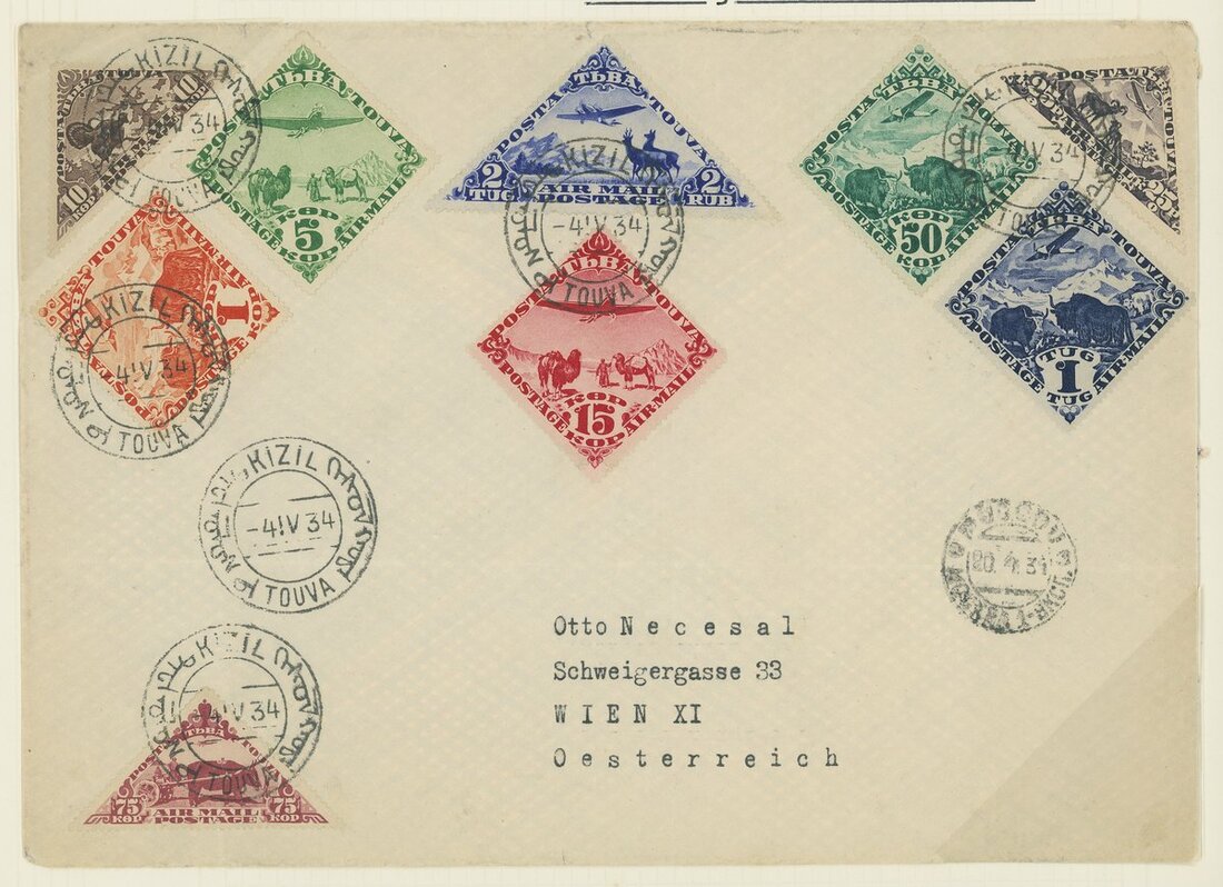 1934-40 postal history selection (15) arranged on exhibition pages, variously franked bearing examples from the air mail issue or from the ordinary issue including perf. and imperf. addressed to Switzerland, England, Palestine, Italy, Austria, USA and Germany. Mostly from Kizil and one from Turan. Mixed condition. A very useful lot for the expert of the area.