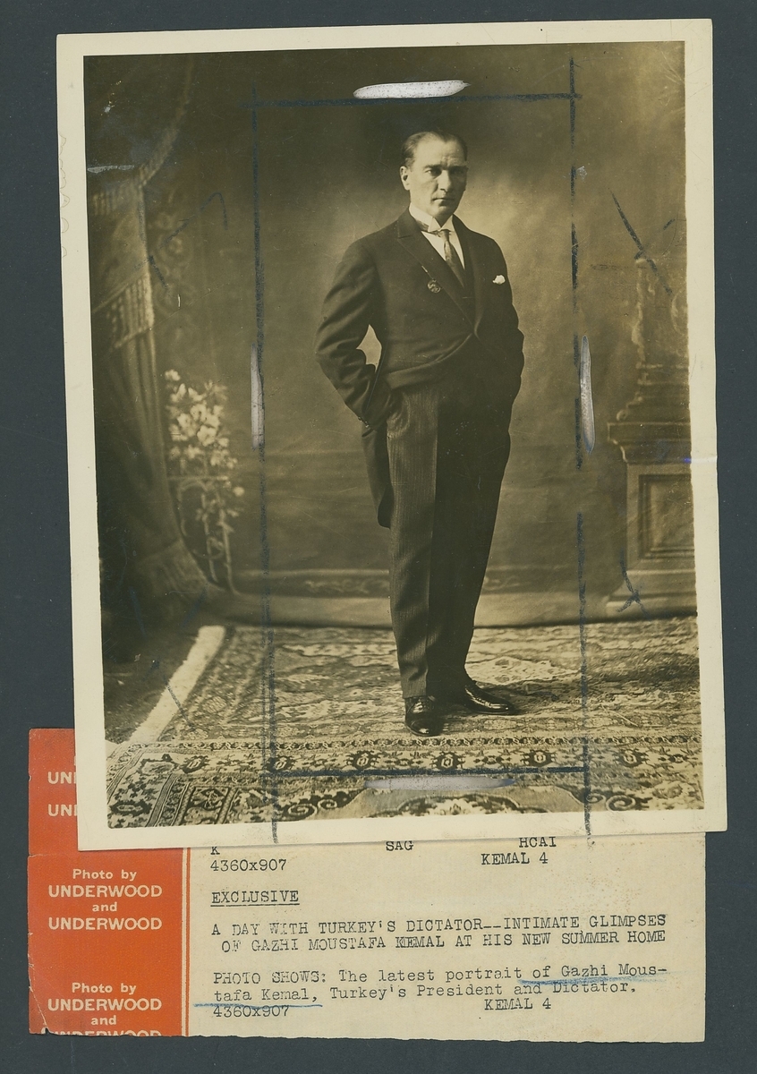 1929-30s, an archive of European press photographs (c.25) centring on Turkey and Kemal Ataturk with pictures including visits from King Edward VIII, a luxury yacht owned by the Turking Government, Ataturk's summer home, and his funeral. As is the case with working press images, the frames have been edited, cropped or marked. A most interesting group.