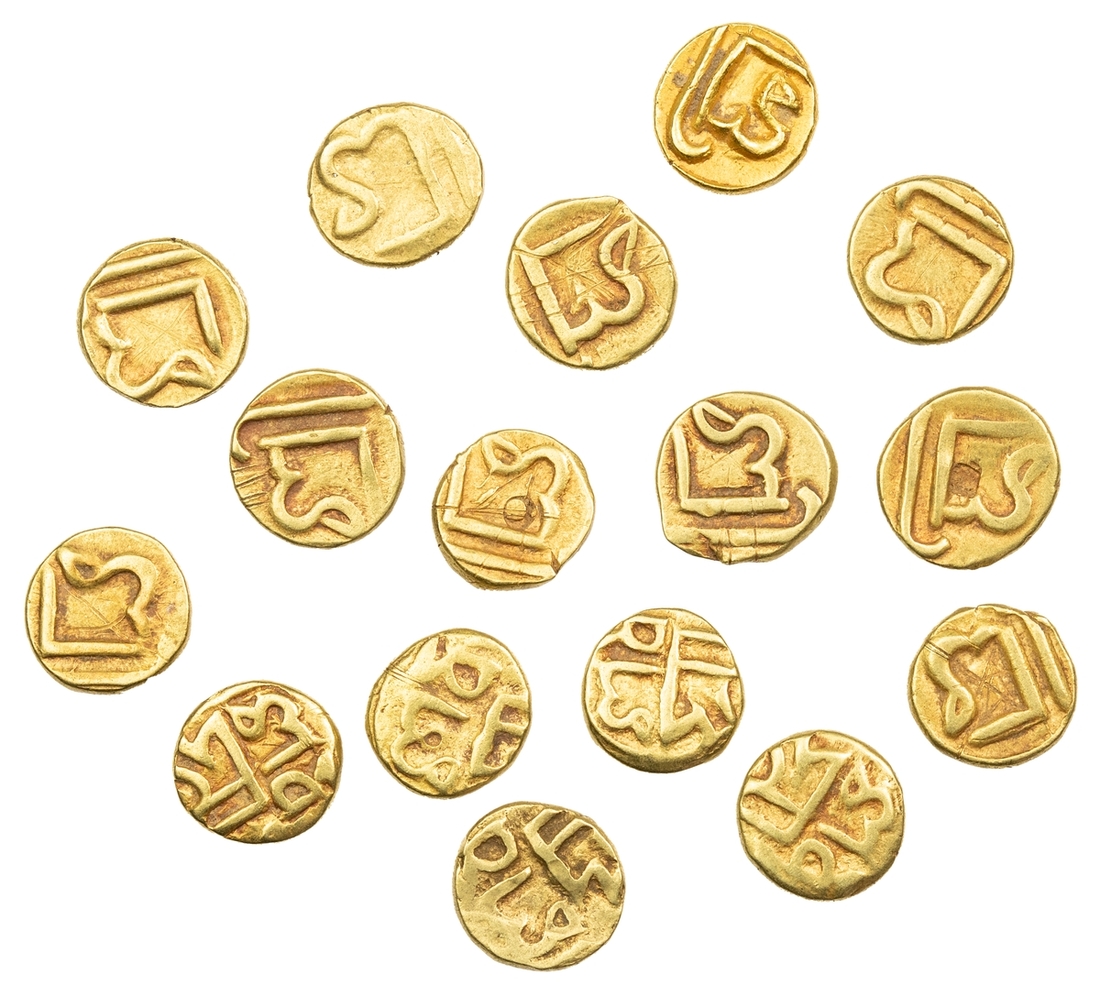 Medieval, Anonymous, gold Shivaka (16), undated, Obv. Śrī, covering whole flan, Rev. legend in two lines Śiva/sya, (RGV 168), some scratched, one coin of pale colour, generally very fine and scarce (16)