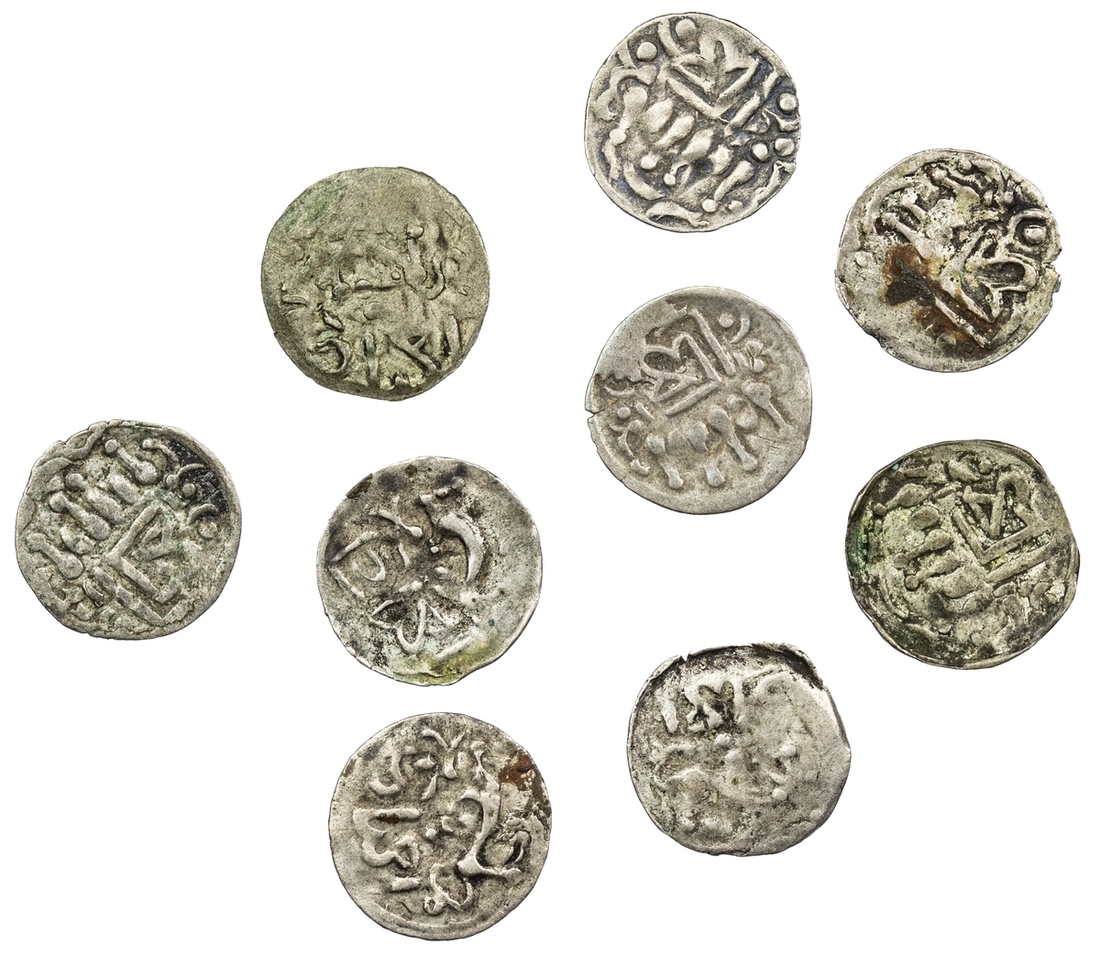 Nepal, Shiva Simha, king of Patan and Kathmandu (1574-1619), Dam of Tanka standard (9), undated, Obv. Śrī between two crescents with dot, above two standing elephants facing outwards, Rev. Śiva over lion (simha) (RGV 246; KM 138), fine to very fine (9)