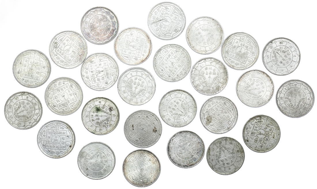 Nepal, Tribhuvan Vira Vikrama Shah (1st reign, 1911-1950), Rupees (7), VS 1989 (1932); VS 1991 (1934) (2); VS 1992 (1935) (2); VS 1993 (1936) (2); and other Rupees (19) all known dates from VS 1994 (1937) - VS 2003 (1946); VS 2005 (1948) (KM 723), very fine to uncirculated (26)