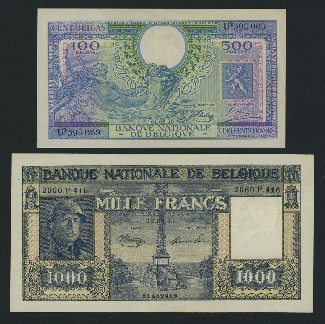 500 Francs/100 Belgas, 1st February 1943, serial number U2399 069,
