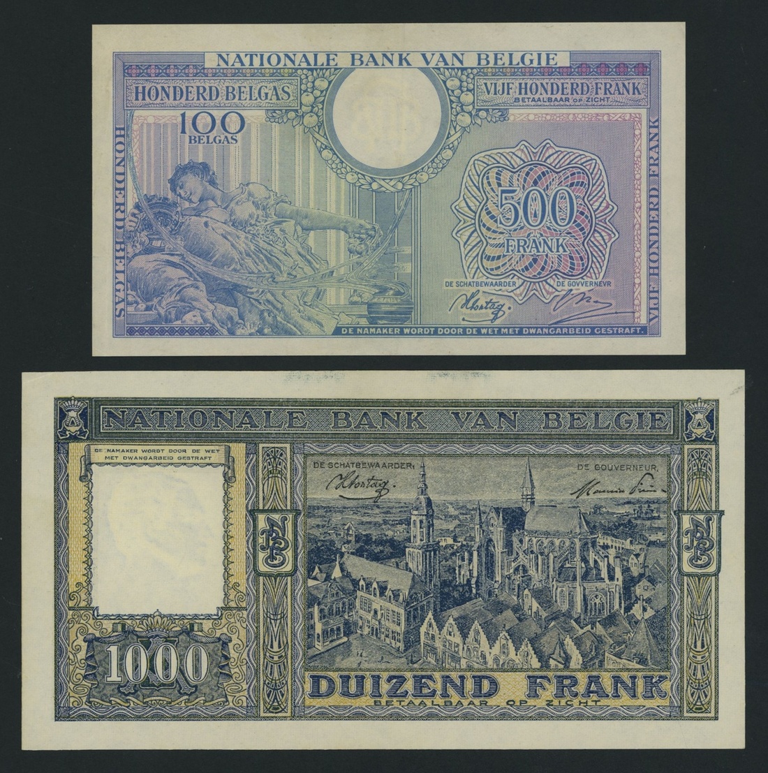(x) Banque Nationale de Belgique, Belgium, [4 notes], 500, 1000 Francs, 1931-1945,