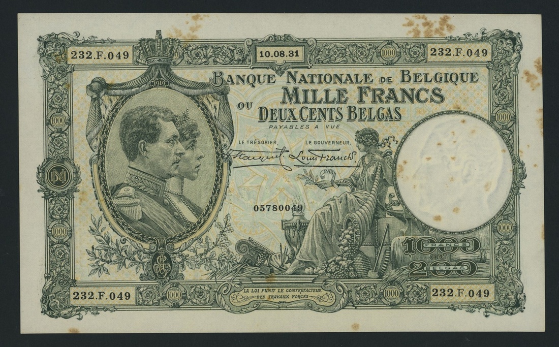 1000 Francs/200 Belgas, 10th August 1931, serial number 232.F.049,