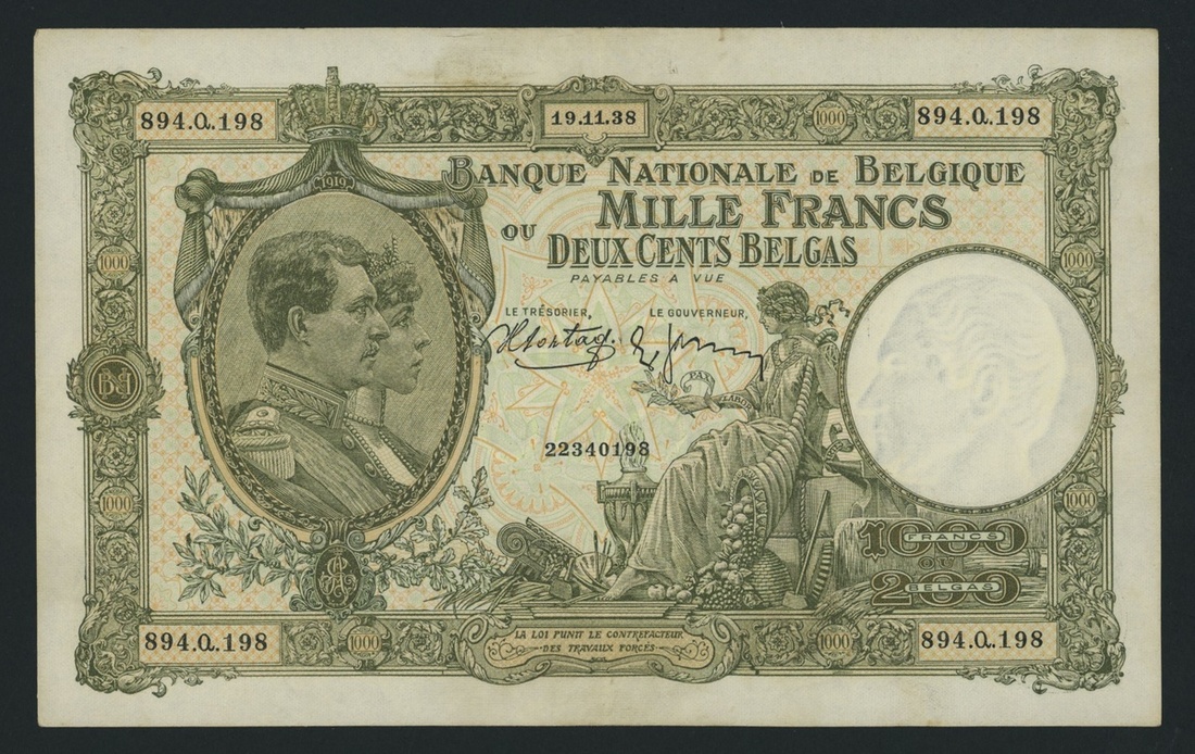 1000 Francs/200 Belgas, 19th November 1938, serial number 894.Q.198,