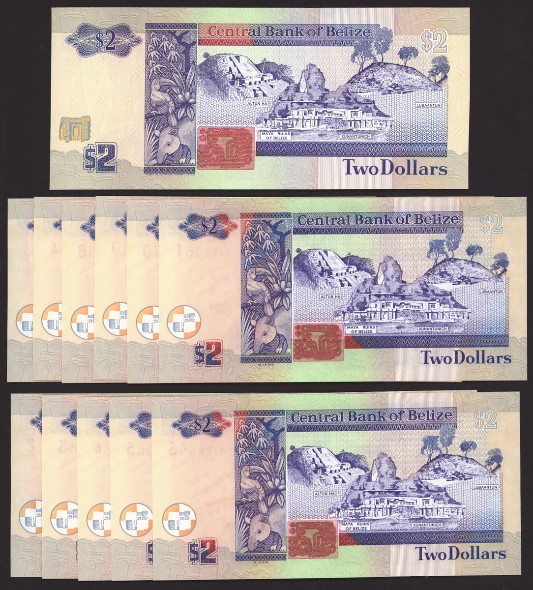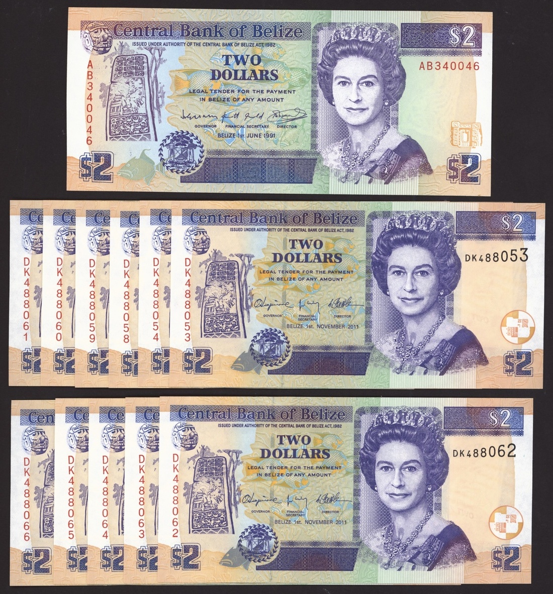 $2 (12), one note 1991, the rest are reduced size 2011, includes run of consecutive serial numbers,