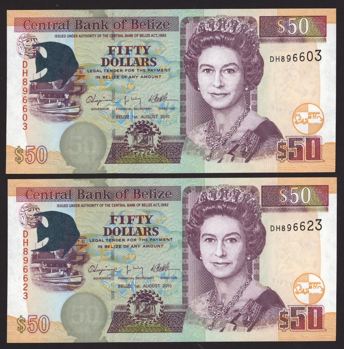 $50 (2), 1st August 2011, serial numbers DH896603 and DH896623
