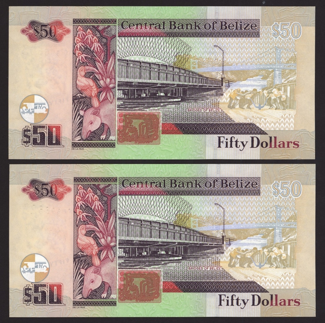 (x) Central Bank of Belize, [14 notes] $2, $50, 1991-2011,