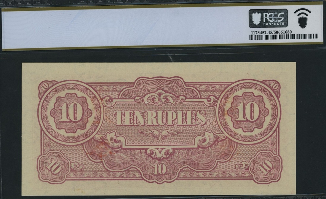 (x) Burma, Japanese Occupation, WWII, [Top Pop] specimen 10 rupees, ND (1942), serial number BA, (Pick 16s, BNB 308as), in PCGS holder 45 PPQ Choice Extremely Fine, single graded by PCGS Banknote, scarce