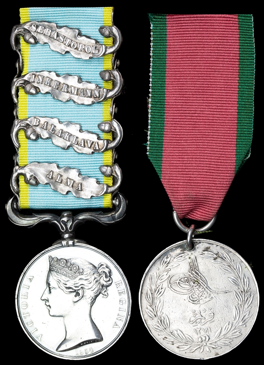 Crimea 1854-56, 4 clasps, Alma, Balaklava, Inkermann, Sebastopol, unnamed as issued; Turkish Crimea 1855, Sardinian issue, unnamed as issued, minor contact marks, very fine