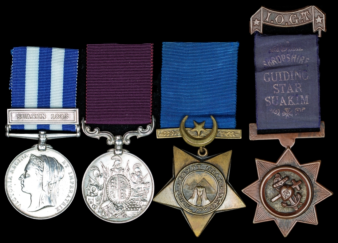 Egypt and Sudan 1882-89, undated reverse, 1 clasp, Suakin 1885 (1442, Pte. E. Sayers, 1/Shrops:L.I.); Army L.S. & G.C., V.R. (1442, Pte. E. Sayers, Shrops:L.I.); Khedive's Star, dated 1884-6, sold together with an International Organisation of Good Templars Star, contact marks and contact wear, very fine (3)
