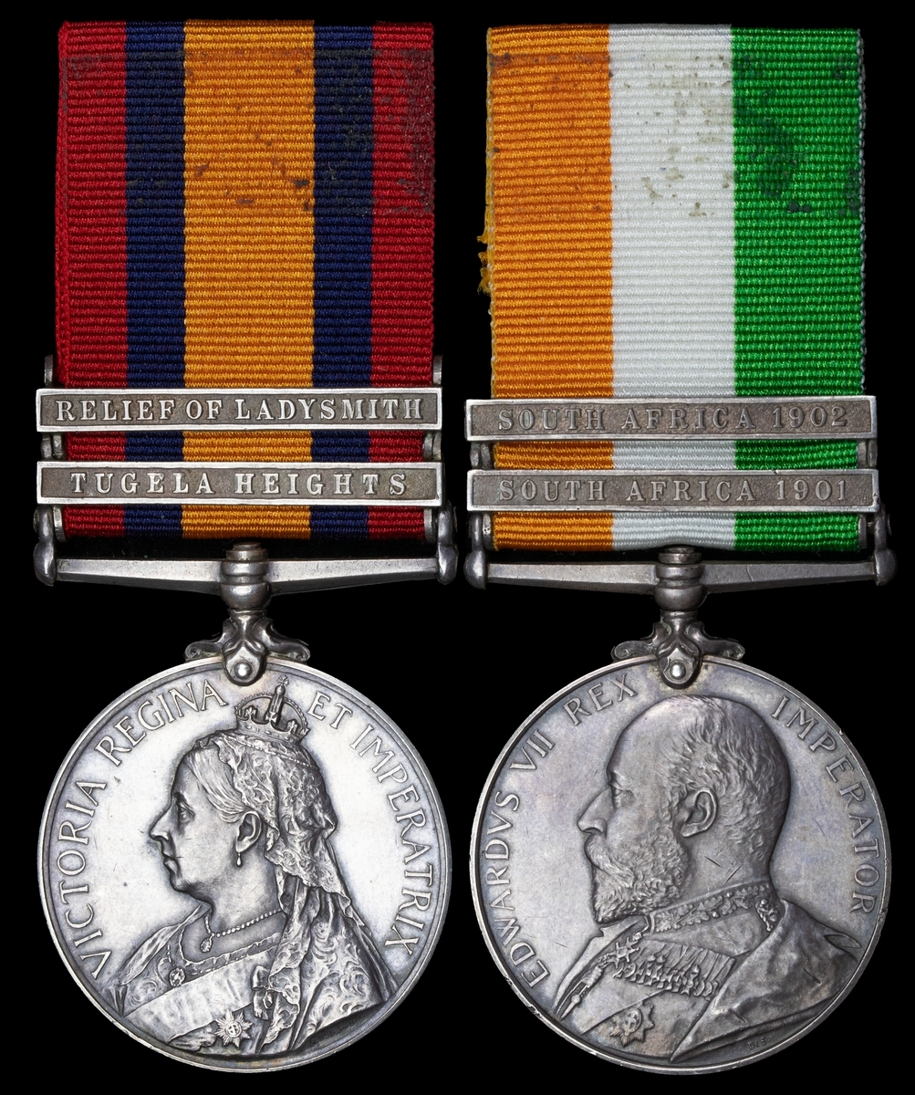 Queen's South Africa 1899-1902, 2 clasps, Tugela Heights, Relief of Ladysmith (Br: J. Zeiss. Natal Vol: Amb: C.); King's South Africa 1901, South Africa 1902, 2 clasps, South Africa 1901, South Africa 1902 (Guide J. M. B. Zeiss. F.I.D.), lightly toned, good very fine (2)