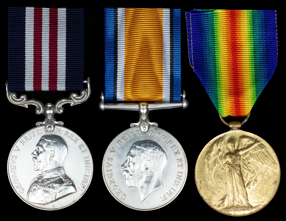 Military Medal, G.V.R. (26382 Pte. D. Gilbert. 7/Shrops:L.I.); British War and Victory Medals (4060 Pte. D. Gilbert. Ches. R.), good very fine (3)