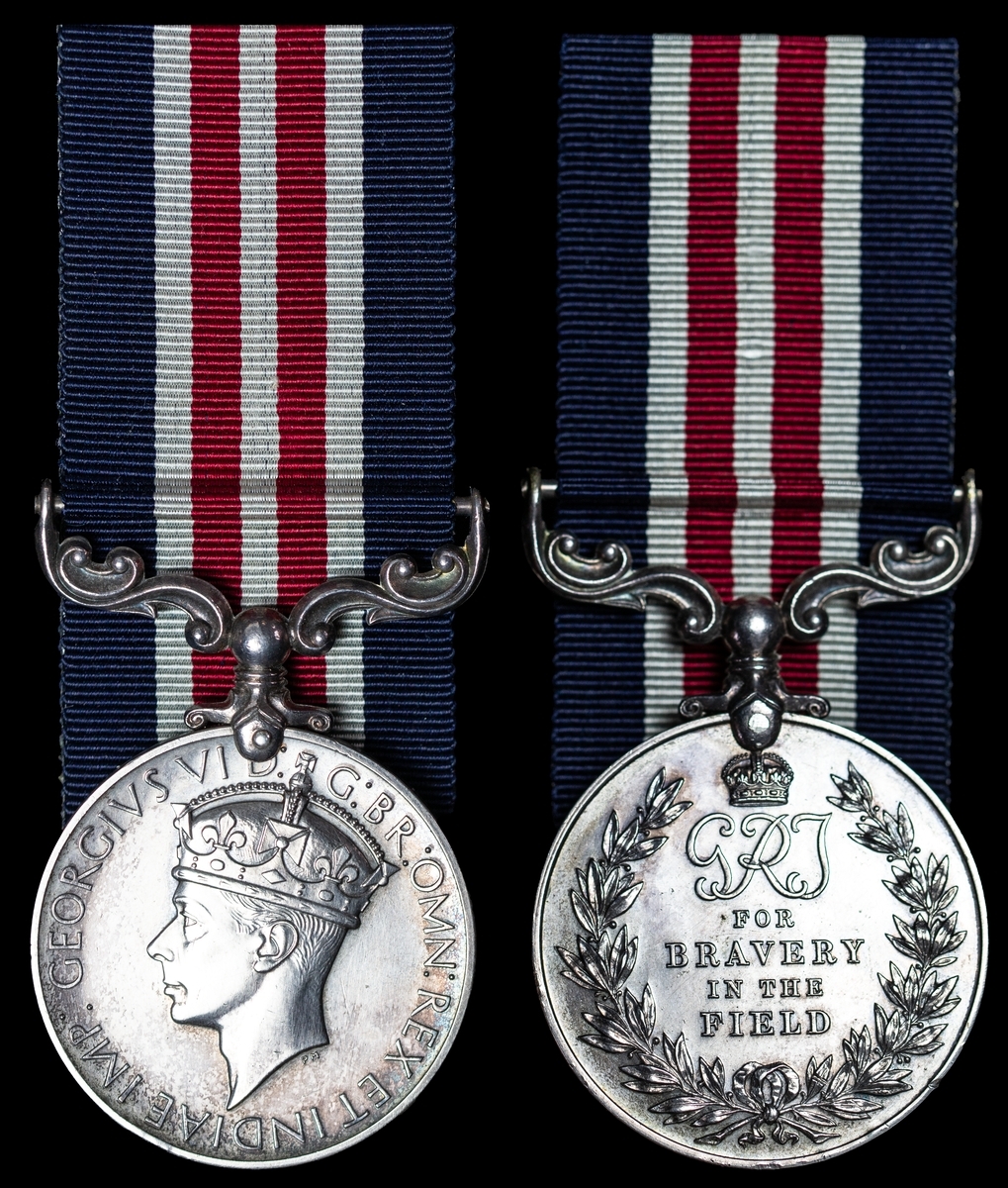 John Charles Harry Horsefield was born at Heeley, Sheffield, Yorkshire and was serving in the 22nd Field Regiment Royal Artillery prior to the outbreak of war in 1939. As part of the British Expeditionary Force the Regiment took part in the early actions in France with Horsefield playing a prominent role in maintaining and keeping intact the lines of communication between his Battery and the observation posts whilst under continuous and heavy fire for which he was awarded the Military Medal.