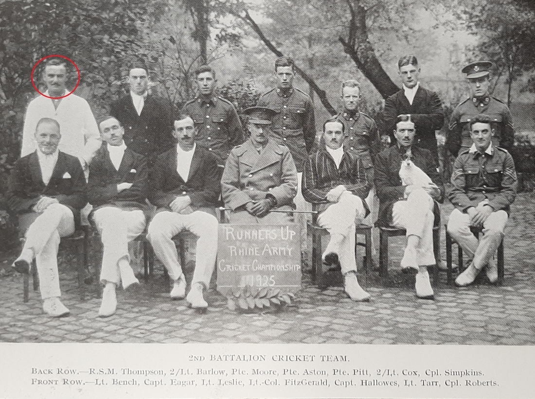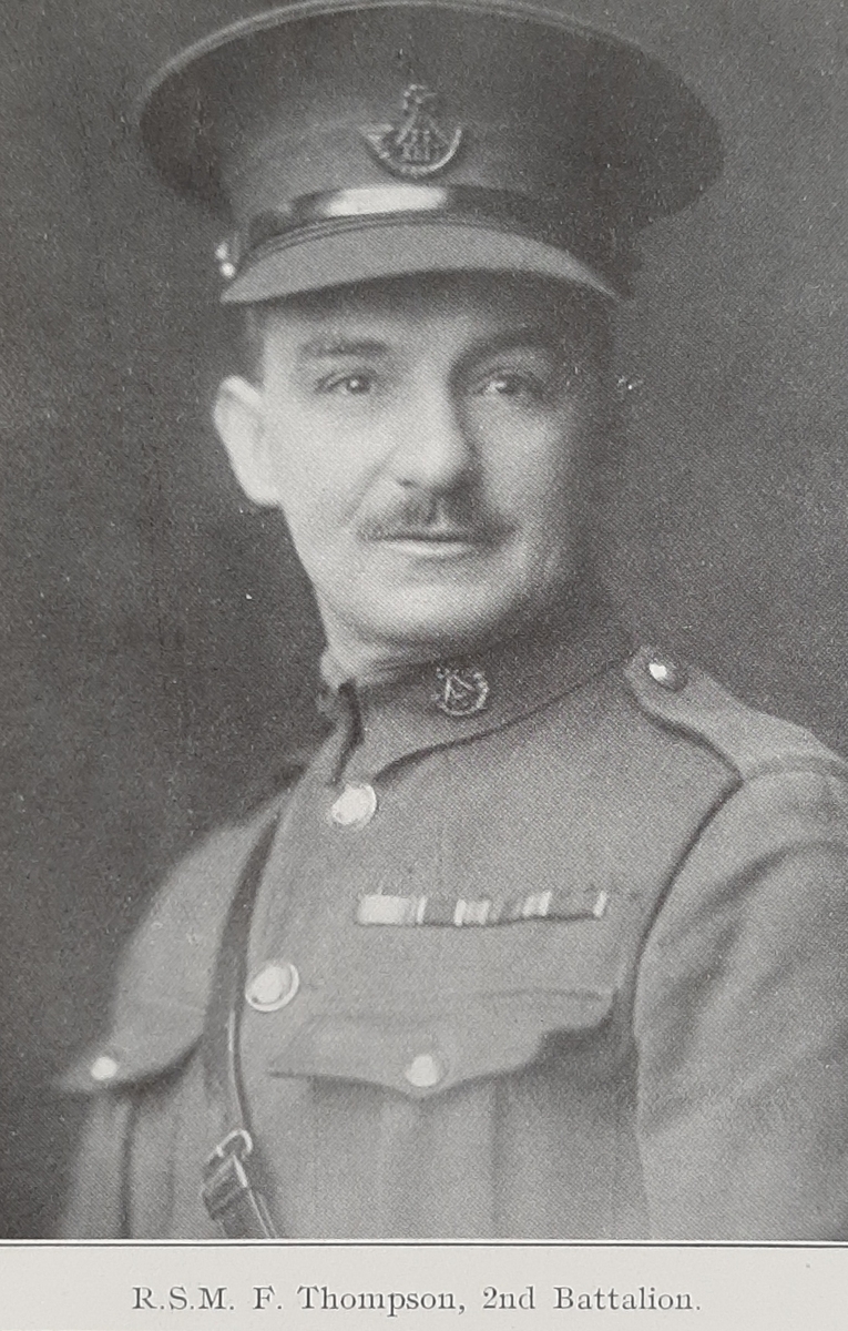 'R.S.M. F. Thomson, a Shropshire man by birth, enlisted on 20th April, 1903, and joined the 1st Battalion four months later.