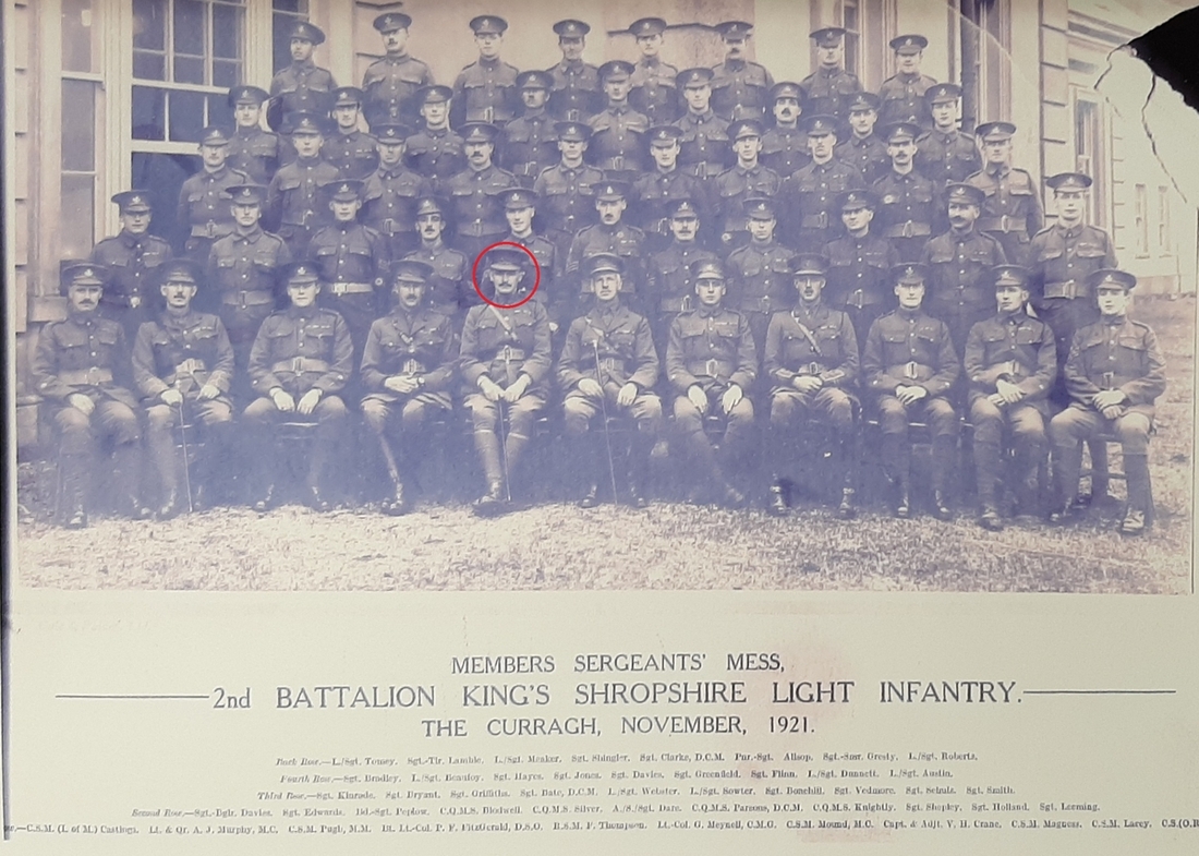 On 28th July, 1920, he was promoted R.S.M. of the 2nd Bn. Then at the Curragh Camp.